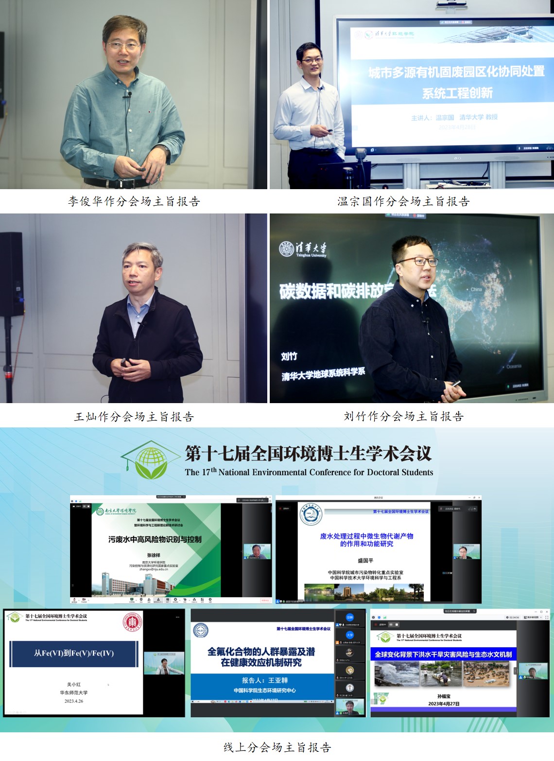 作为分会场主旨报告特邀嘉宾,南京大学张徐祥教授作“污废水中高风险物识别与控制”报告、中国科学技术大学盛国平教授作“废水处理过程中微生物代谢产物的作用和功能研究”报告、清华大学李俊华教授作“重点行业烟气减污降碳协同防治思考与挑战”报告、清华大学温宗国教授作“城市多源有机固废园区化协同处置系统工程创新”报告、华东师范大学关小红教授作“从Fe(VI)到Fe(IV)/Fe(V)”报告、中国科学院生态环境研究中心王亚韡研究员作“全氟化合物的人群暴露及潜在健康效应机制研究”报告、清华大学王灿教授作“面向碳中和的气候政策模拟研究前沿问题”报告、中国科学院新疆生态与地理研究所孙福宝研究员作“全球变化背景下洪涝干旱灾害风险与生态水文机制”报告、清华大学刘竹副教授作“碳数据及碳排放定量方法”报告。