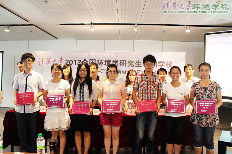 在随后举行的结业典礼上,厦门大学学员陈聪聪代表全体学员总结了在暑期学校期间的收获,助教代表只艳带领大家重温了这十四天紧张而充实的学习生活。随后,黄霞教授宣读了学术委员会关于考核结果和优秀学员表彰的决定:82名学员考核结业,授予丁强等8名同学“优秀学员”称号和环境英才奖学金,给予3名家境贫寒的同学环境英才助学金资助,给予1名新疆维吾尔族学员少数民族环境英才助学金资助。左剑恶教授在结业致辞中,对各位学员通过考核顺利结业表示祝贺,希望大家有机会再来清华学习工作。